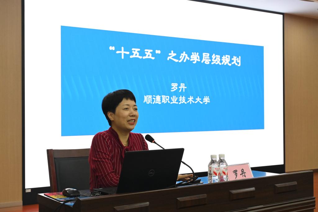 顺德职业技术大学罗丹副校长作了《“十五五”之办学层级规划》的讲座,深入分析了升创职业本科院校的战略意义,阐释了本科层次职业学校的创建流程、可行性指标、申报材料要求、建设提升举措、风险评估程序,为我校申报本科层次职业学校相关工作提供了有针对性和操作性的指导建议。